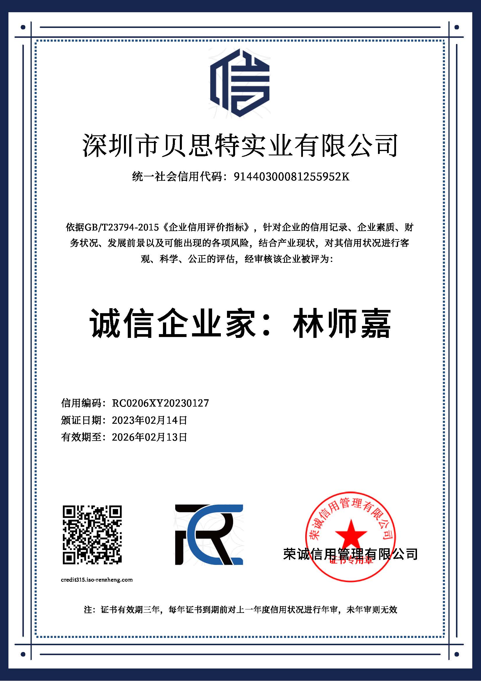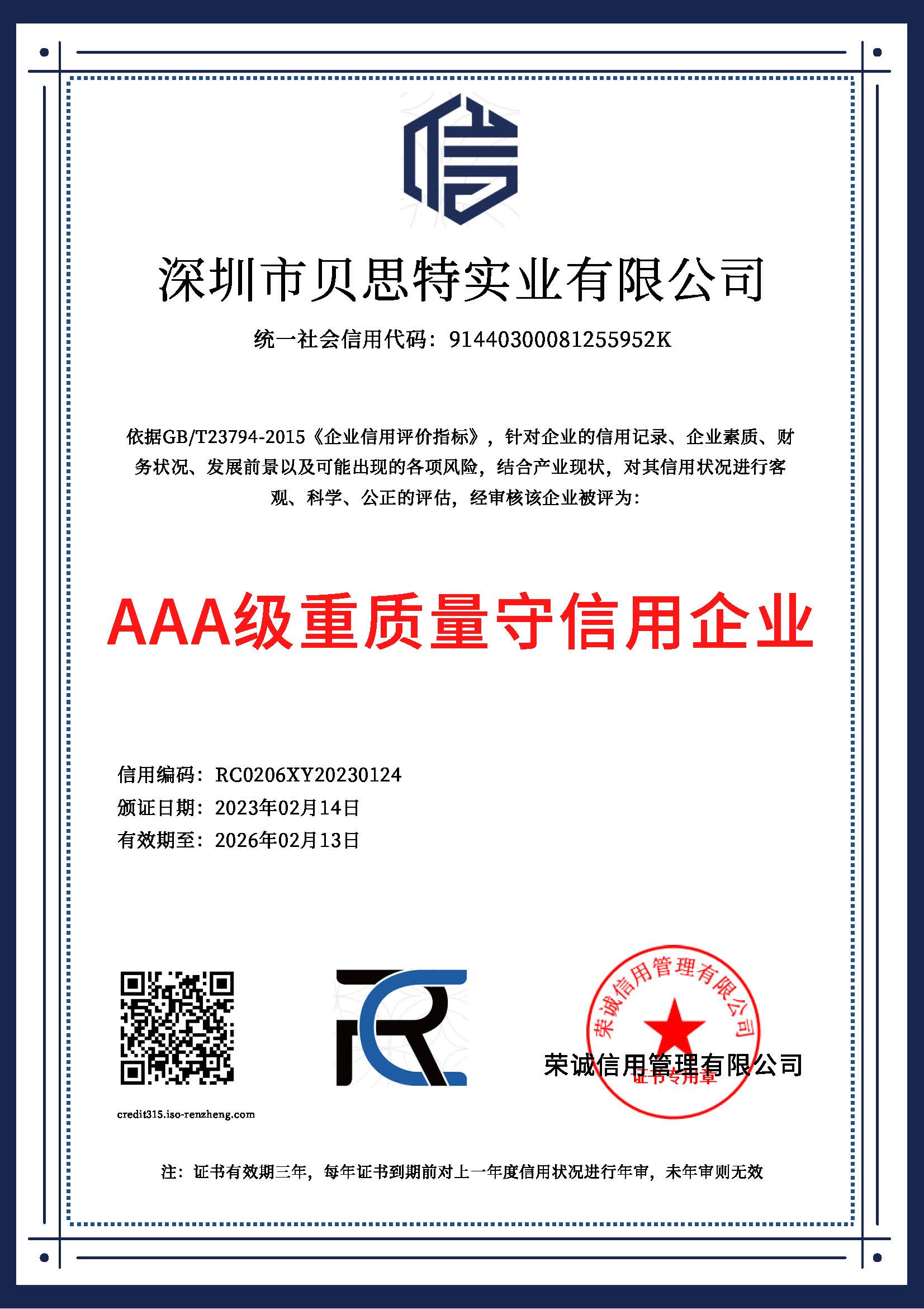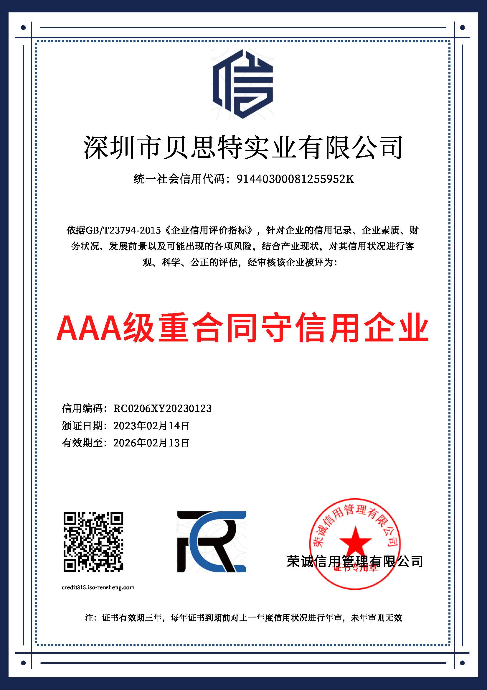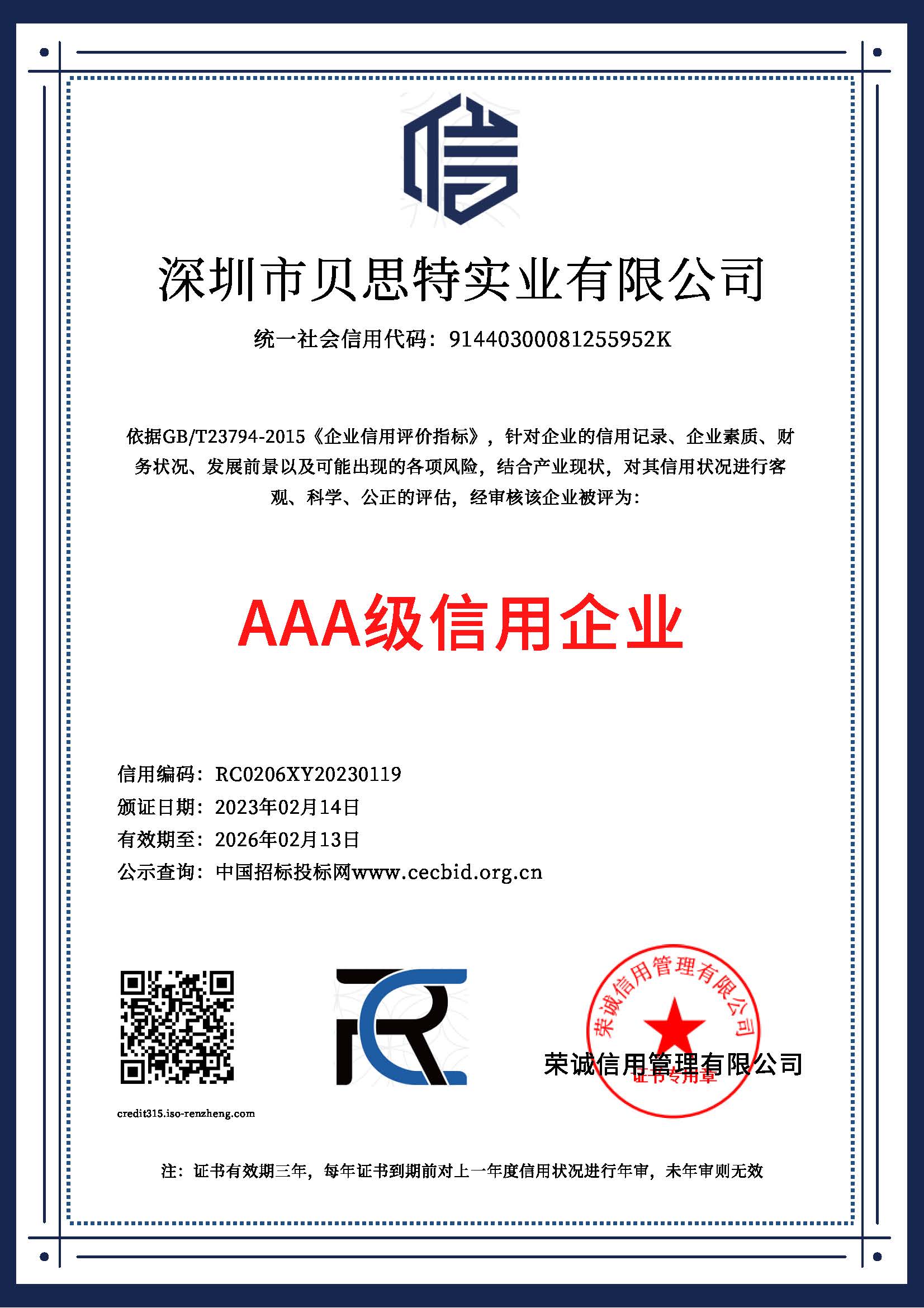 深圳市貝思特實業(yè)有限公司, 簡稱: 貝思特, 是國家高新技術(shù)企業(yè)、深圳海關(guān)高級認(rèn)證企業(yè)、深圳稅務(wù)局A類企業(yè)、深圳外匯管理局A類企業(yè)。2013年成立于深圳, 注冊資金5100萬元人民幣, 企業(yè)人數(shù)近200人。
